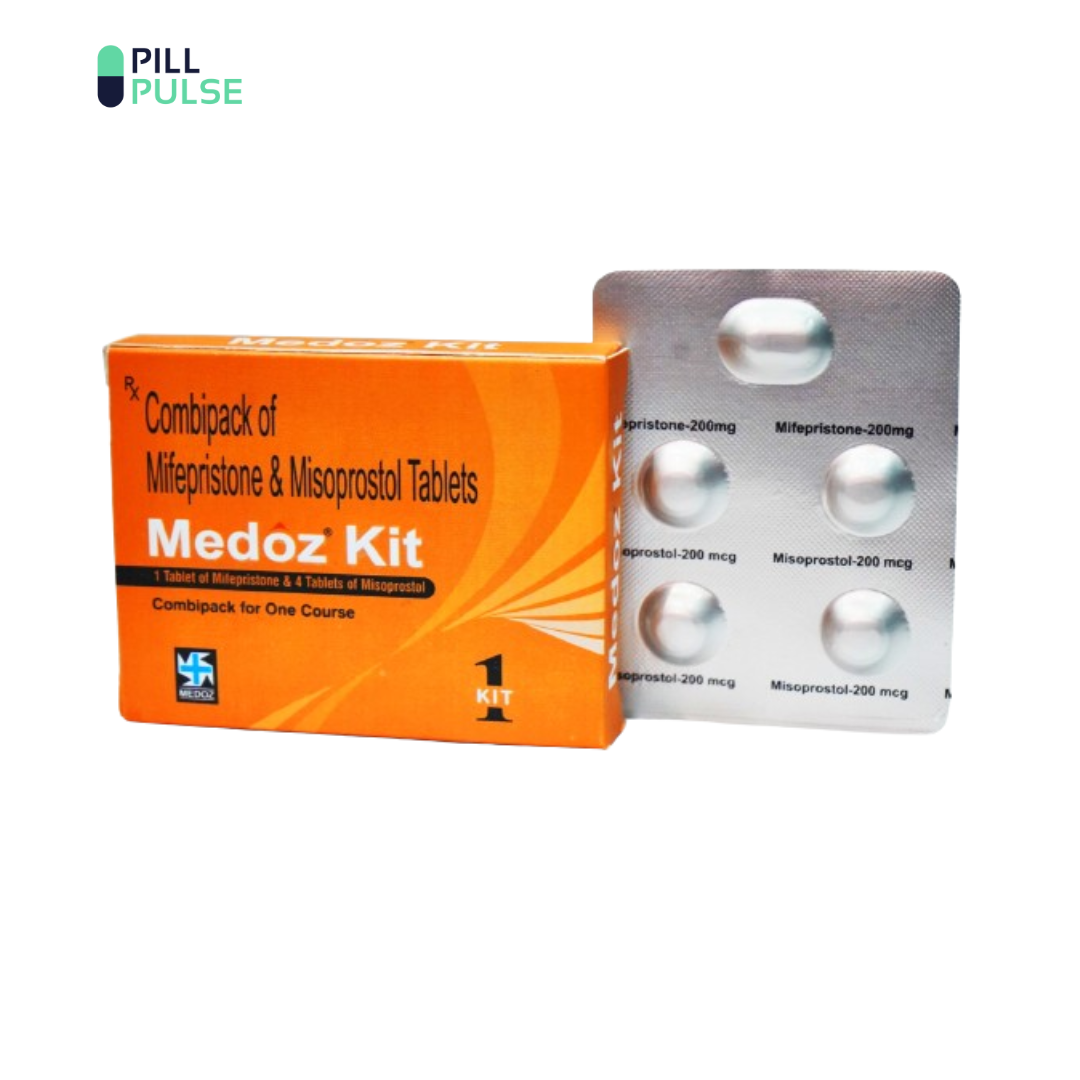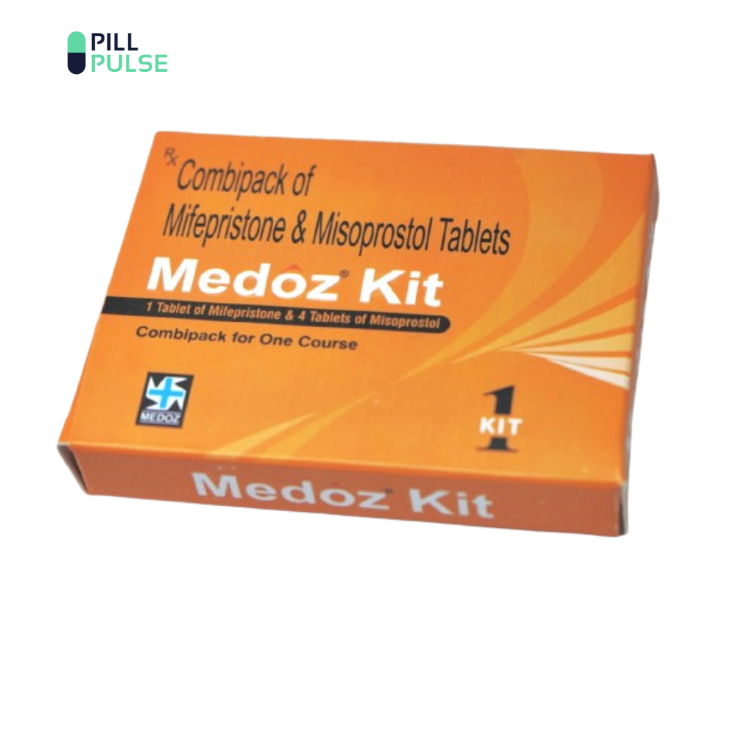 The Medoz MTP Kit is a reliable, safe, and effective solution for medical termination of pregnancy. This comprehensive kit contains one tablet of Mifepristone (200mg) and four tablets of Misoprostol (200mcg each), carefully designed to be used under medical supervision for the non-surgical termination of intrauterine pregnancy up to 63 days (9 weeks) of gestation.